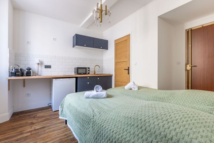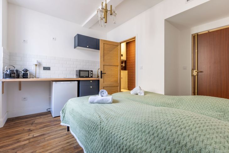 Ce petit studio entièrement refait à neuf en mai 2025 et idéalement situé, est au 2e étage d'un immeuble classique (sans ascenseur).